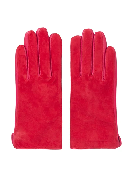 Czerwone rękawiczki to absolutny statement piece – czerwone, odważne, kobiece. Z zewnątrz miękki zamsz w intensywnym odcieniu, od wewnątrz gładka skóra z kontrastującą zamszową wstawką w części chwytnej. Ten model nie jest dla nieśmiałych – to dodatek, który przyciąga wzrok i dodaje energii całej stylizacji.