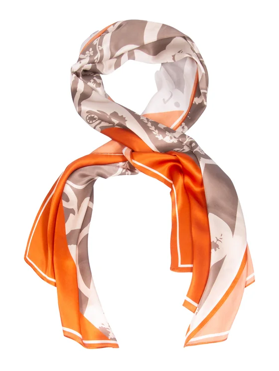 Oferujemy elegancki szal jedwabny w odcieniach pomarańczu i beżu, który doda klasy każdej stylizacji. Wykonany z wysokiej jakości jedwabiu, nasz szal charakteryzuje się wyjątkową miękkością i lekkością, co sprawia, że jest niezwykle przyjemny w noszeniu. Jego subtelny, ale wyrazisty kolor sprawdzi się doskonale zarówno w codziennych, jak i wieczorowych outfitach.