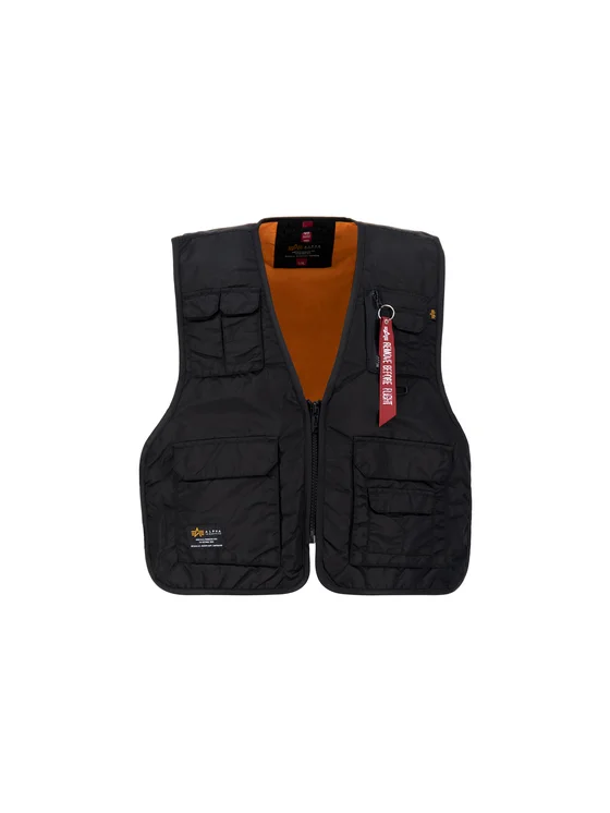 Utility Vest od Alpha Industries łączy funkcjonalność z miejskim designem. Wykonana z wytrzymałego Flight Nylon, zapewnia trwałość i komfort w fasonie Regular Fit. Pięć przednich kieszeni oferuje dużo miejsca do przechowywania, podczas gdy kieszeń użytkowa z tagiem RBF i metalowym pierścieniem nadaje autentyczny styl militarny. Boczne zapięcie na pasek umożliwia indywidualne dopasowanie, a tkane etykiety dodają subtelne akcenty marki. Idealna do noszenia na bluzie lub T-shircie.