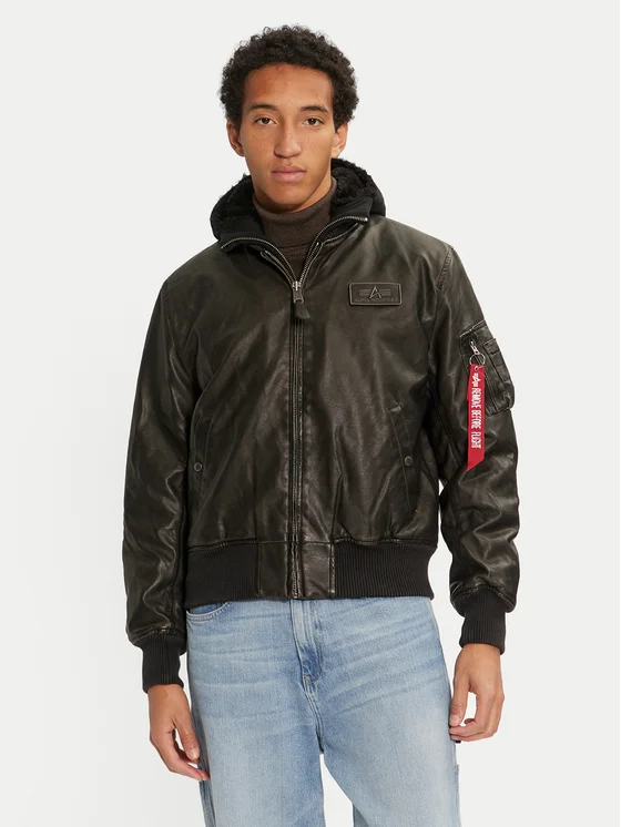 Alpha Industries Kurtka z imitacji skóry 123106 Czarny Regular Fit