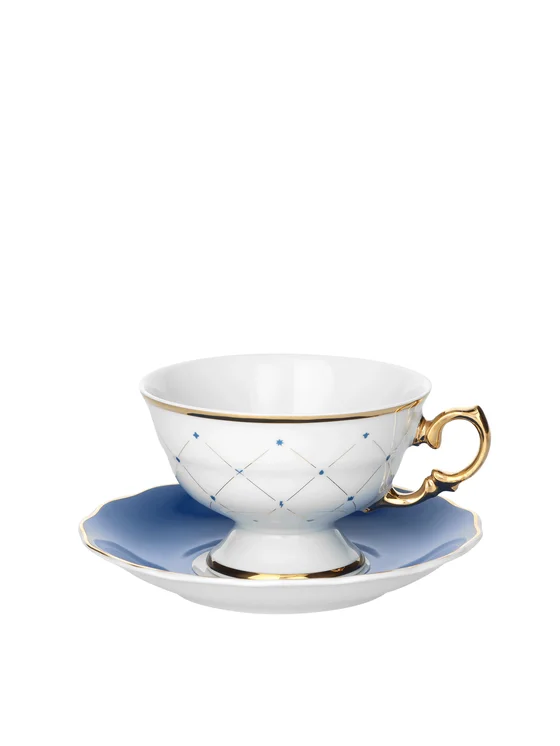 Ćmielów.Alaska Circus Blue.Filiżanka porcelanowa do herbaty ze spodkiem.pojemność: 180 ml,średnica spodka: 14 cm,materiał: porcelana.