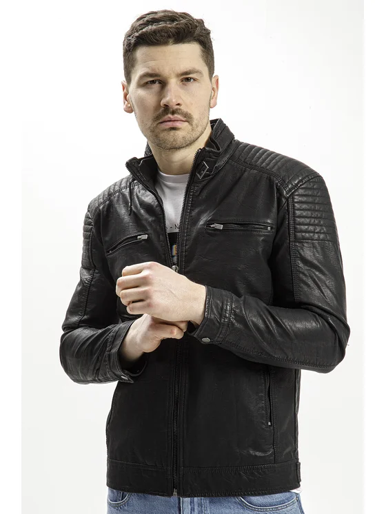 Kurtka skórzana 40231-020 Czarny Regular Fit