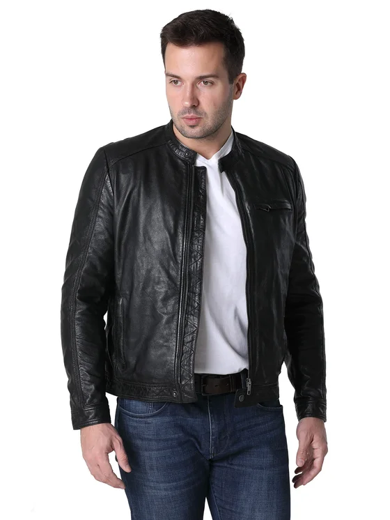 David Ryan Kurtka skórzana PETER Czarny Regular Fit