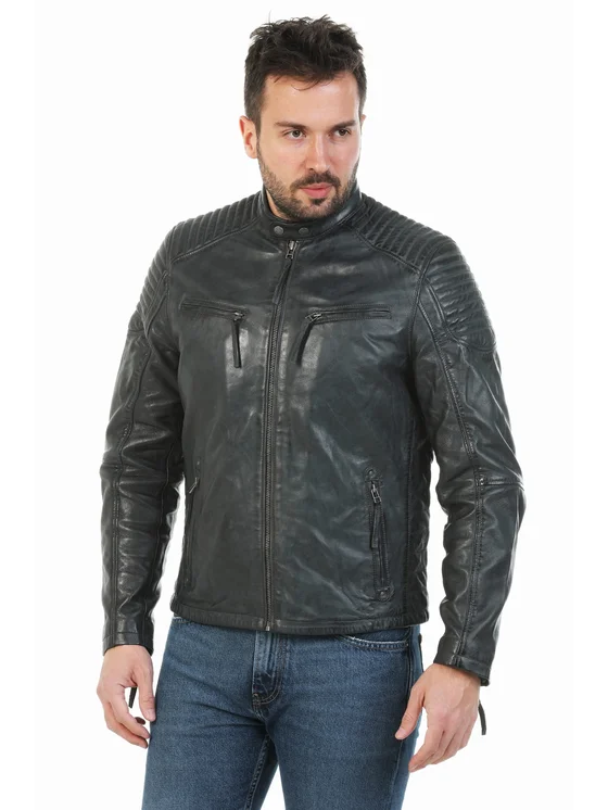 David Ryan Kurtka skórzana RON Niebieski Slim Fit