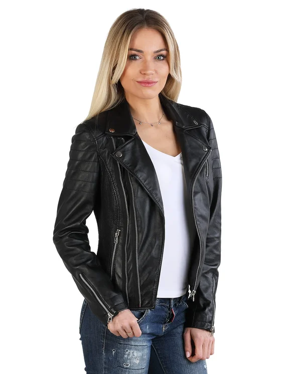 David Ryan Kurtka skórzana VICKY Czarny Regular Fit