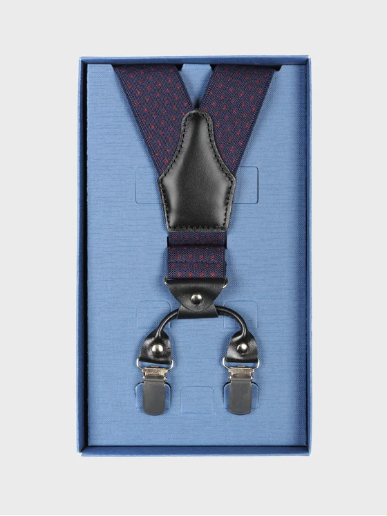 Eleganckie granatowe szelki z subtelnym bordowym wzorem kropek to idealny wybór dla mężczyzn, którzy cenią klasyczny styl z nutą nowoczesnego designu. Delikatny, kontrastowy wzór nadaje szelkom unikalnego charakteru, dzięki czemu pasują zarówno do formalnych, jak i półformalnych stylizacji.