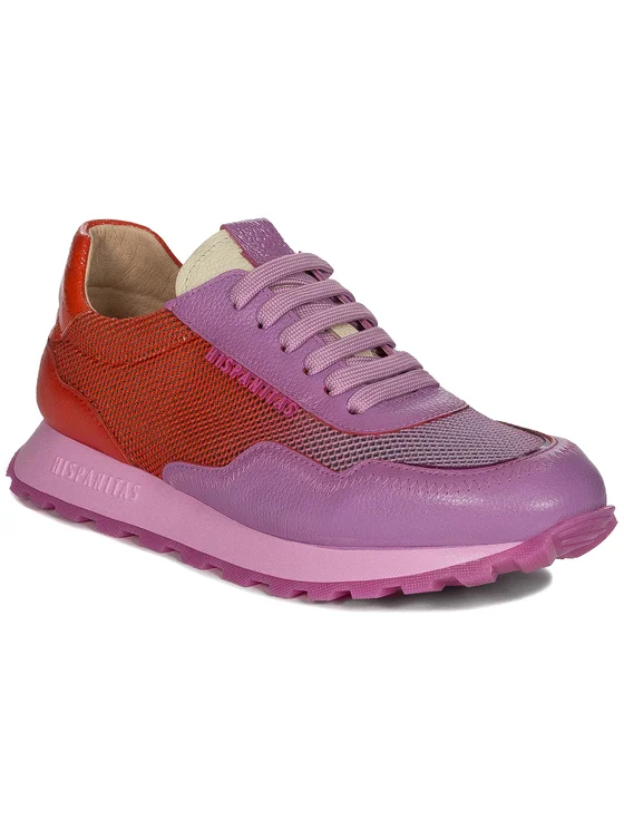 Najnowsza propozycja hiszpańskiej marki Hispanitas, to sneakersy, półbuty damskie w nietuzinkowym, fioletowym i czerwonym kolorze z dodatkiem różu. Cholewka została wykonana z połączenia niezwykle miękkich skór naturalnych: lakieru i skóry licowej oraz siateczkowej tkaniny. Wnętrze buta wyściełane jest oddychająca tkaniną. Dodatkowo zastosowano miękką, wymienną wkładkę. "Kropki nad i" dodaje wzbogacenie podeszwy o system TRIFLOW, który zapewnia stopom niebywałą amortyzację podczas chodzenia. Podeszwa to platforma o wysokości 3 cm wykonana została z wysokogatunkowego tworzywa. Model wiązany na klasyczne sznurowadła. Model ten idealnie uzupełnia wiele stylizacji - pasuje zarówno do sportowego, luźnego looku jak i bardziej formalnych sukienek i spódnic. W tych butach na pewno wyróżnisz się z tłumu. Kraj pochodzenia: Hiszpania.