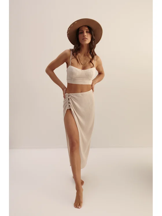 Hottie Hot Komplet top i spódnica HARMONY Beżowy Slim Fit