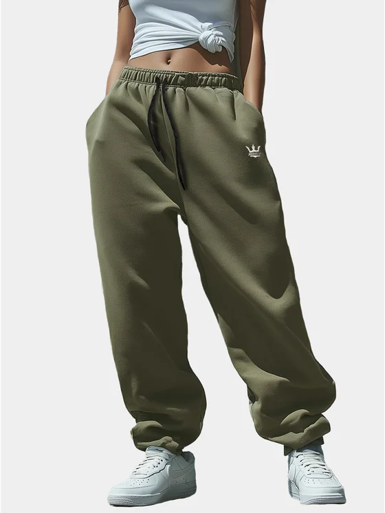 Jigga Wear Spodnie dresowe Szerokie Luźne Baggy Damskie Khaki Jigga Haftowane Logo Drawcord XL Zielony Regular Fit