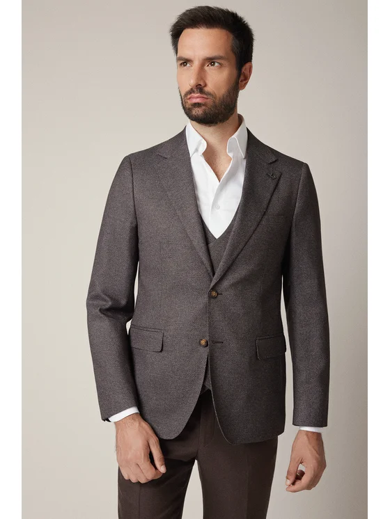 Lancerto Marynarka Calascio MA131225000002 Brązowy Slim Fit