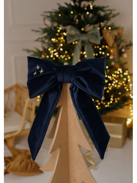 Każda kokarda ozdobiona jest trzema haftowanymi złotymi gwiazdkami w górnym rogu — to drobny detal, który wprowadza odrobinę świątecznego blasku i klasy.