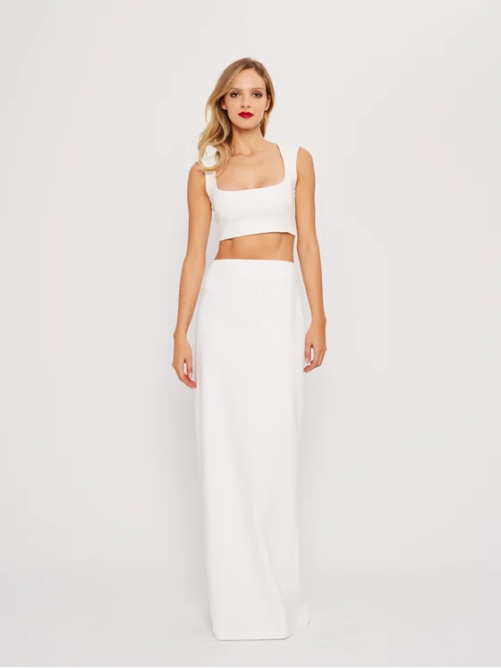 Krótki top przylegający do ciała na grubszych ramiączka zapinany z boku na suwak. W połączeniu z szerokimi spodniami CHARLES lub spódnicą BELLA z Naszej jesiennej kolekcji również stworzy oryginalny look.