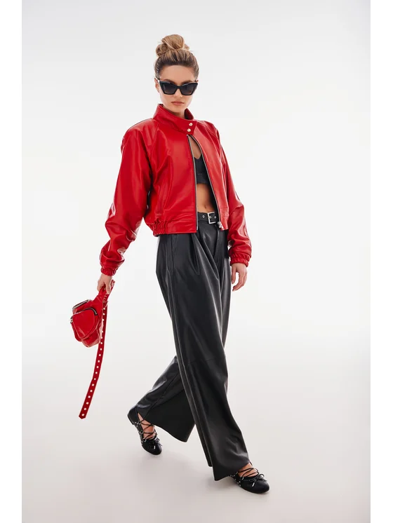 Mimika Kurtka skórzana Bomber n^5 wersja ze stójką Rumor Czerwony Oversize