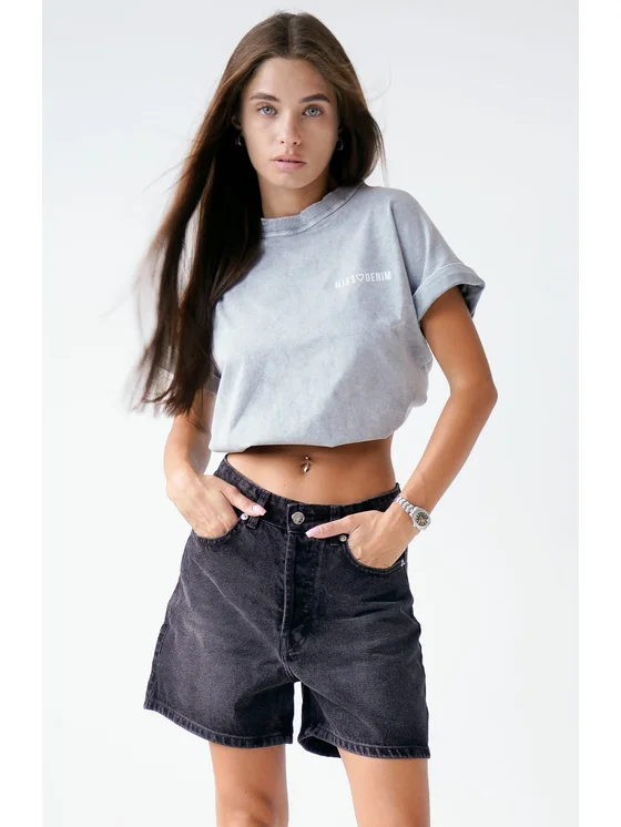 MissDenim T-Shirt Oversize Washed Tee Szary Oversize