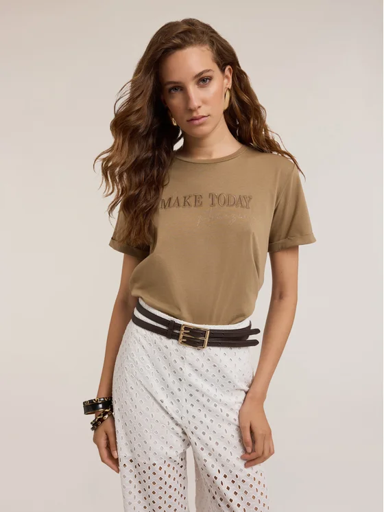 T-Shirt G345W003392N022 Brązowy Regular Fit