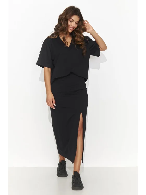 Numinou Komplet bluzka i spódnica NU468 Czarny Regular Fit