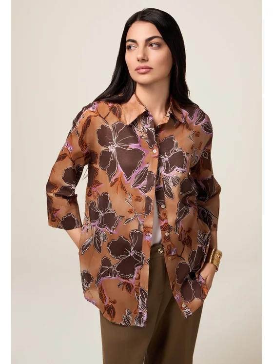 Koszula wykonana ze świeżej, wzorzystej tkaniny w 100% z bawełny; regularny krój z rękawami trzy czwarte; Klasyczny kołnierzyk i zapięcie na guziki z przodu.