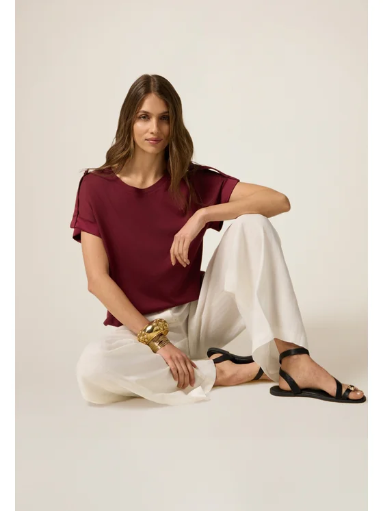 Oltre T-Shirt G435J004252N029 Bordowy Over Fit