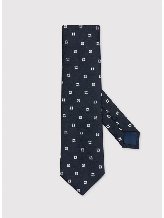 Krawat męski w kolorze granatowym z kolekcji Pako Lorente. Model w całości pokryty wzorem kwiatów w kolorze białym. Granatowy krawat to klasyk, który można dopasować do różnych okoliczności i stylizacji. Krawat to doskonały pomysł na prezent, na święta czy urodziny.