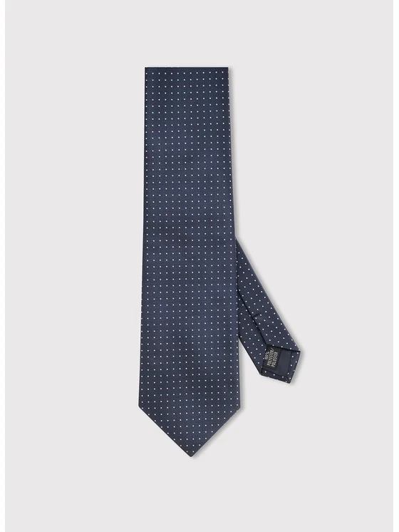 Męski krawat w kolorze granatowym w mikrowzór z kolekcji Pako Lorente. Krawat w całości pokryty drobnym wzorem kropek w kolorze białym. Krawat to idealny dodatek męskich stylizacji, który dodaje wdzięku i klasy. Model w kolorze granatowym, doskonale będzie wyglądał w połączeniu z jasnym garniturem i białą koszulą.
