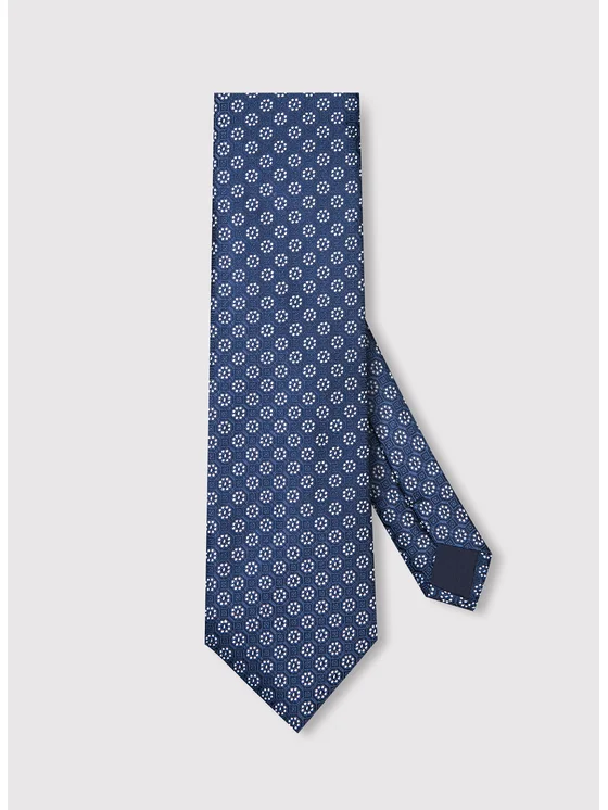 Krawat męski w kolorze granatowym z kolekcji Pako Lorente. Model w całości pokryty wzorem białych, strukturalnych kwiatów. Granatowy krawat to klasyk, który można dopasować do różnych okoliczności i stylizacji. Krawat to doskonały pomysł na prezent, na święta czy urodziny.