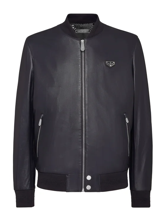 PHILIPP PLEIN Kurtka skórzana 9485 Błękitny Regular Fit