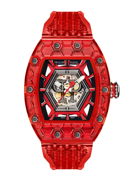 Zegarek PHILIPP PLEIN Crypto King Hexagon uosabia idealną harmonię funkcjonalności, architektury i designu. Jego charakterystyczne cechy obejmują kopertę w kształcie tonneau ozdobioną charakterystycznym dla marki sześciokątnym motywem, najnowocześniejszy pasek i potężny szwajcarski mechanizm automatyczny. Nienaganne rzemiosło i solidna konstrukcja koperty podtrzymują najwyższe standardy szwajcarskiej precyzji zegarmistrzowskiej. Mierzący 55 x 45 mm Crypto King Hexagon posiada dwuwarstwową, otwartą tarczę z rozpoznawalnym logo Hexagon z podwójnym emblematem PP. Przezroczysty dekielek i podwójne szafirowe szkiełko z powłoką antyrefleksyjną zapewniają hipnotyzujący wgląd w skomplikowaną pracę zegarka.