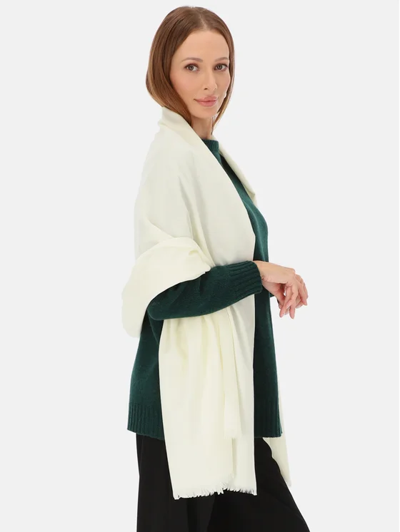 Gładki szal ecru kaszmirowo-wełniany Potis & Verso Uniwersalny