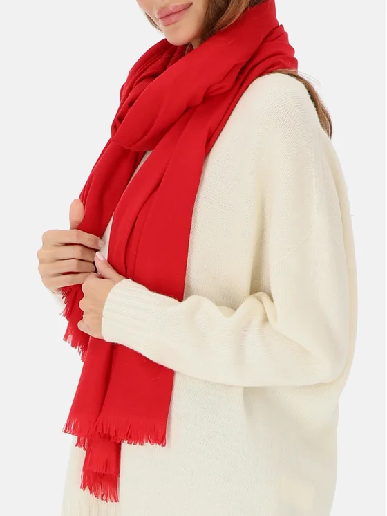 Czerwony kaszmirowo-wełniany gładki szal Potis & Verso Uniwersalny