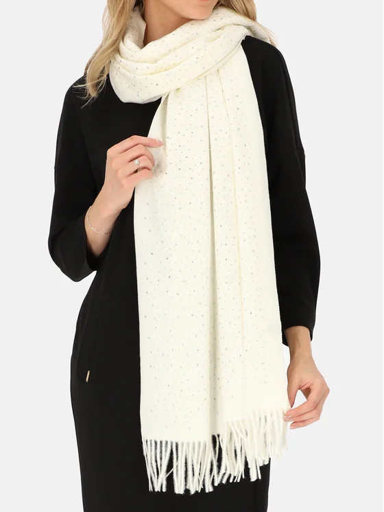 Biały szal wełniany zdobiony kryształkami Potis & Verso Uniwersalny